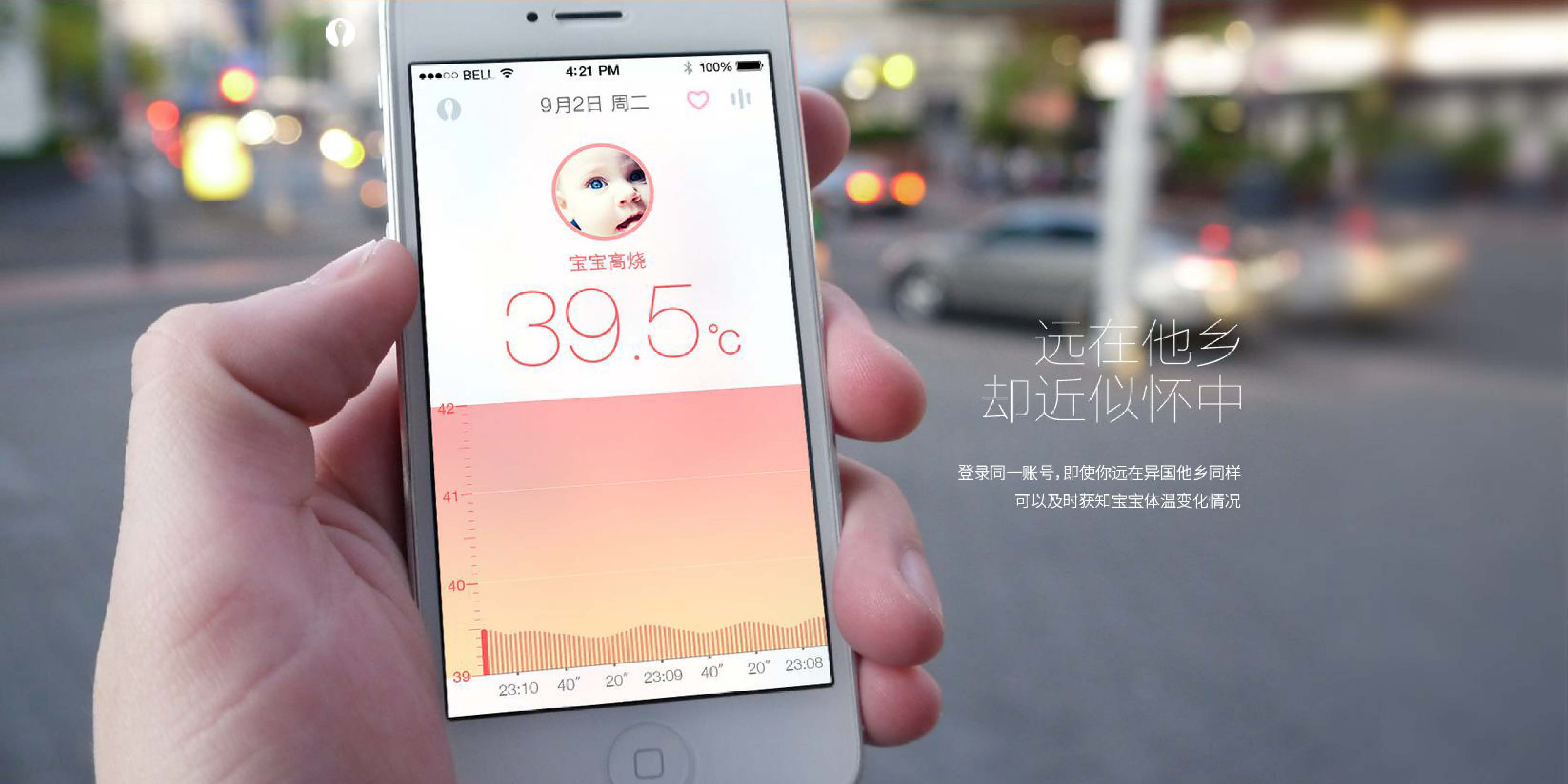 “寶護圈”整體設計親切溫和,最優美的線條也是最溫潤亮澤的形態,柔韌體貼的護圈設計,超乎想象的柔軟質感,順滑細微,呵護寶寶的嬌嫩肌膚。同時可連接APP,登錄統一賬號,即使遠在異國他鄉,也能即使獲知寶寶體溫變化情況,為愛而生,讓寶寶得到更好的呵護,媽媽更安心。