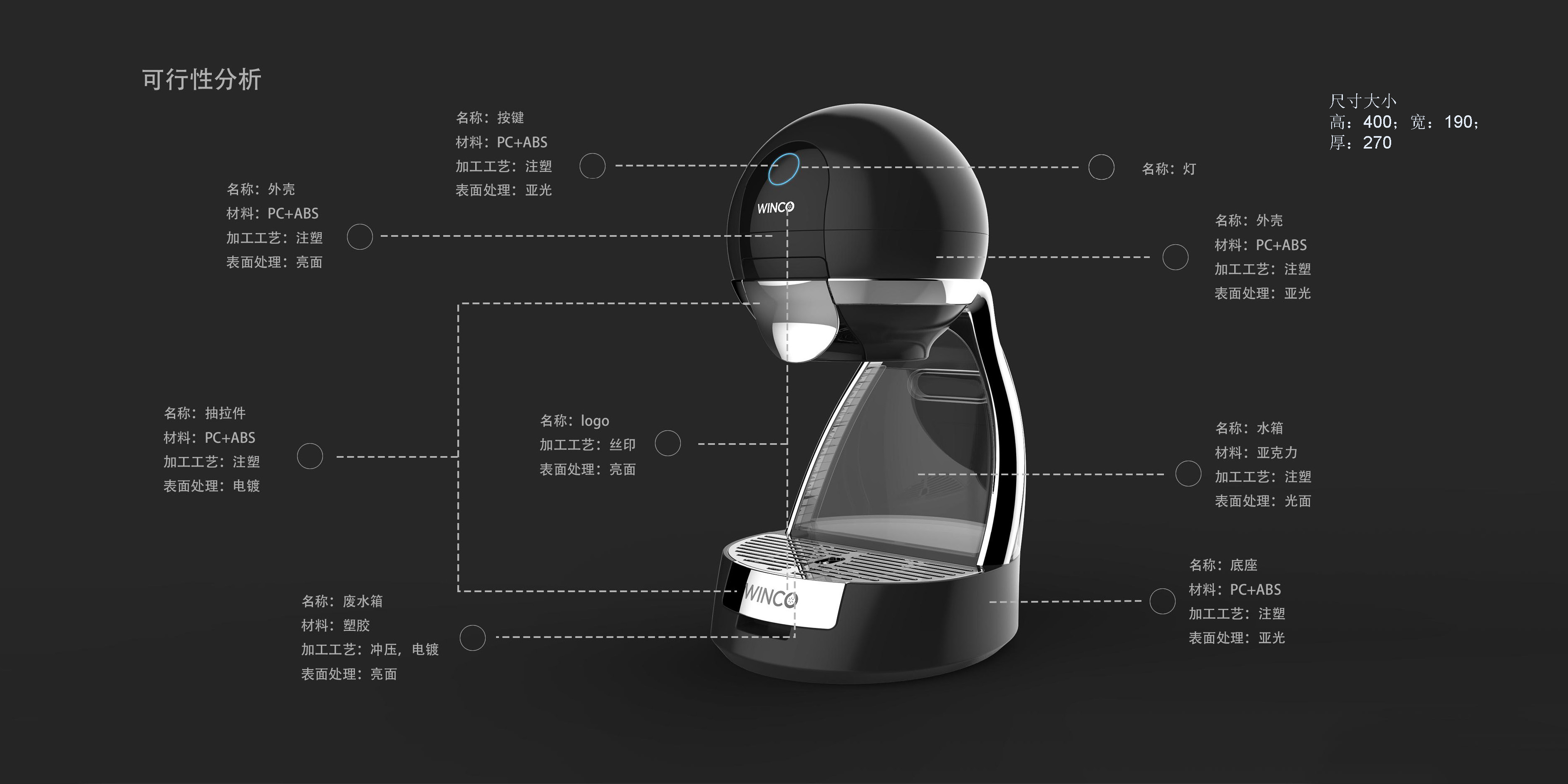 這款咖啡機的設(shè)計吸取了歐洲市場上代表產(chǎn)品型號的設(shè)計趨勢,提取元素進行了仿生設(shè)計,整體形態(tài)簡約飽滿,柔軟可親,給承受巨大壓力的現(xiàn)代人的生活帶來趣味。獨特的視覺符號,點綴現(xiàn)代家居環(huán)境,令生活充滿溫馨氣息。